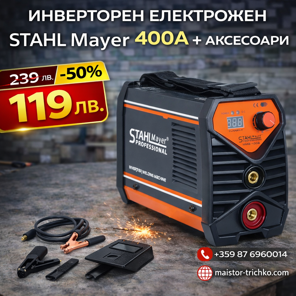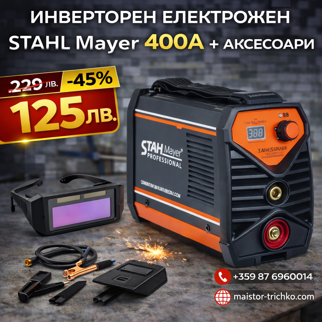Инверторен Електрожен 400А STAHLMAYER с дисплей от 1 до 5ММ