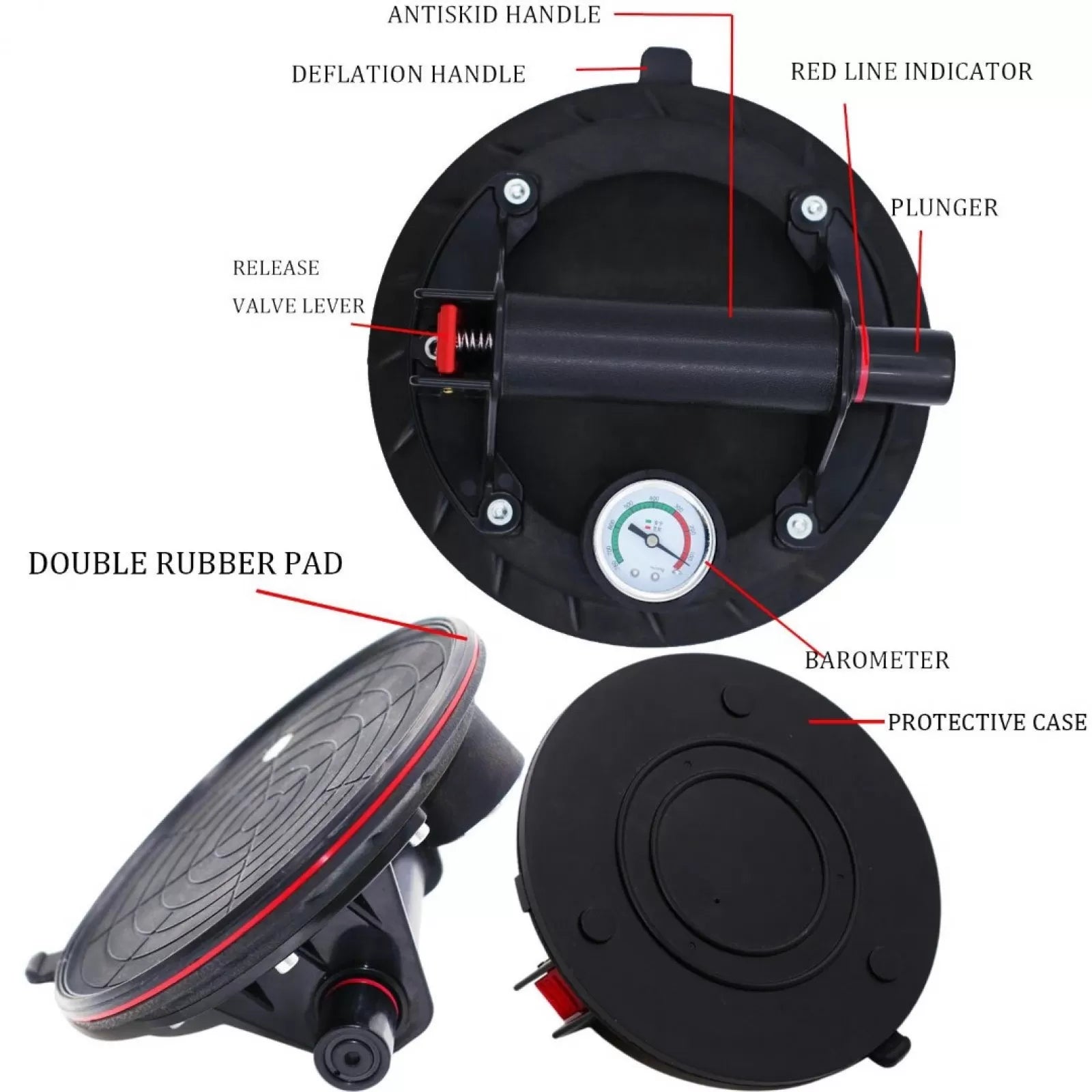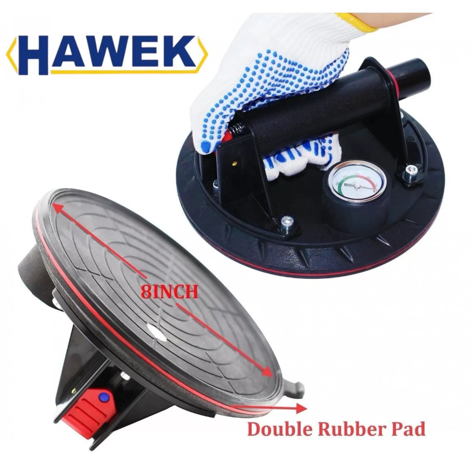 Вендуза с манометър за плочки, стъкла и др. вакуумна помпа Ø200 мм. HAWEK. 130 кг.