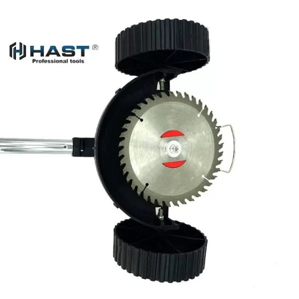 • Еластичната катарама е по-гъвкава от традиционната фиксирана катарама, която е подходяща за 22-27 mm прътове за косачки. В допълнение, уникално проектираният регулируем ъгъл на колелата улеснява достигането до всеки ъгъл.