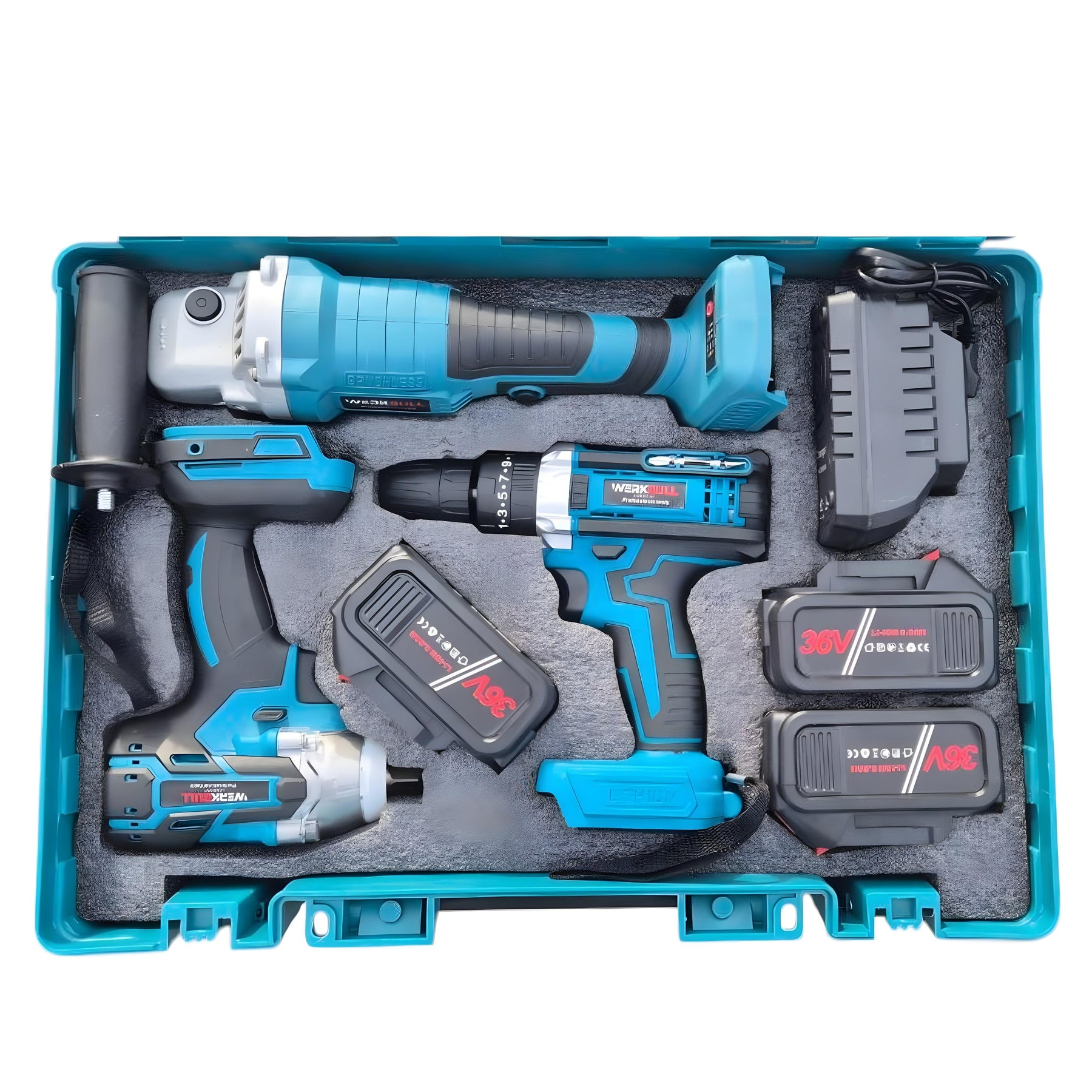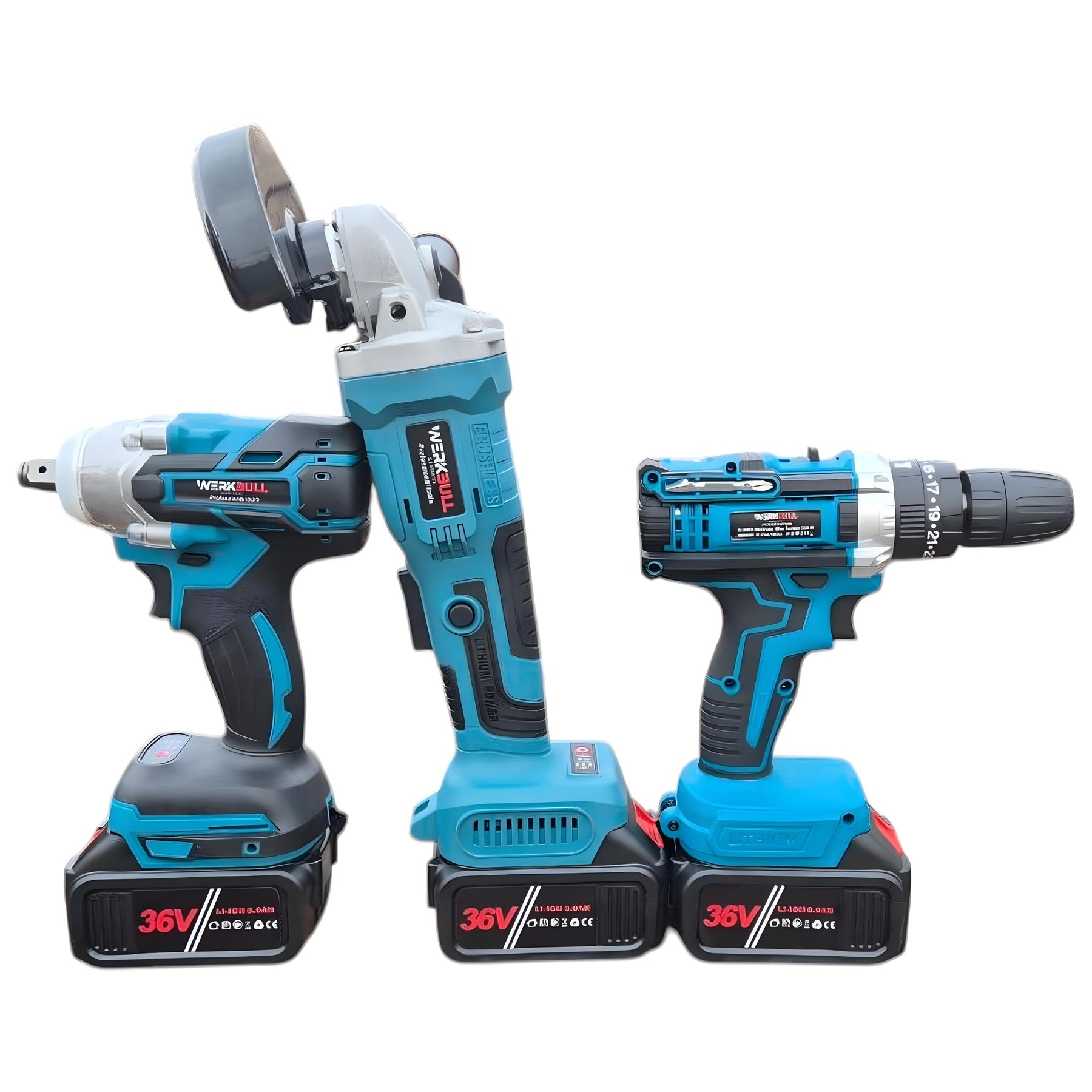 3в1 Промо комплект WerkBull Гайковерт, ъглошлайф и винтоверт + 3 батерии 36v 8ah