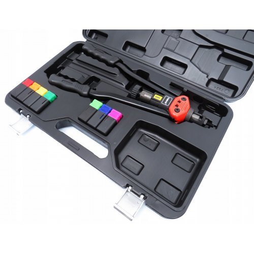 Професионална нитачка с 3 функции. Проектирана да прави материални връзки с нит гайки, нитове и подрязване на отвори с две форми (квадратни и кръгли). Главите са изработени от трайна хром-молибденова инструментална стомана. Удобен куфар за съхранение и транспортиране.