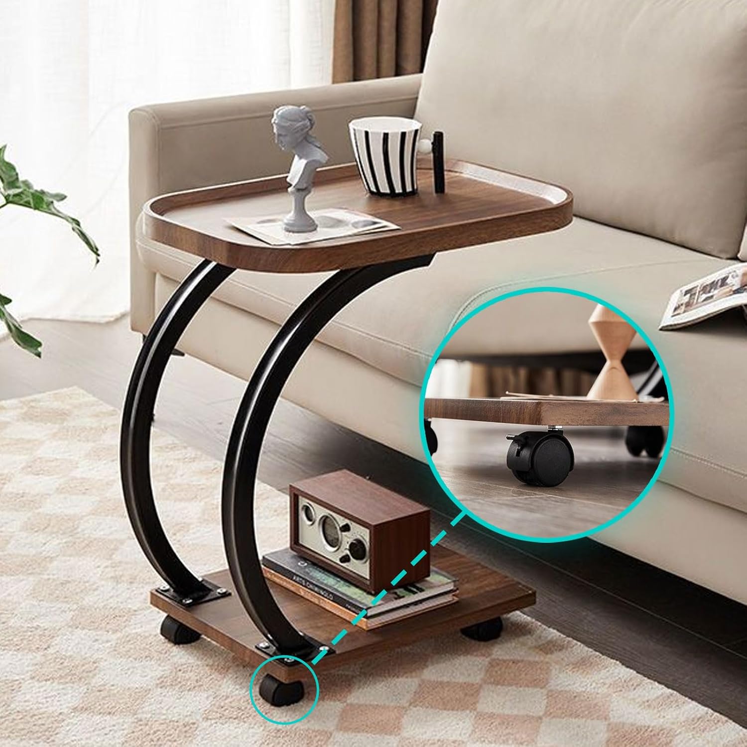 • C-образен дизайн с универсални колелца – позволява лесно приплъзване под диван, легло или стол.