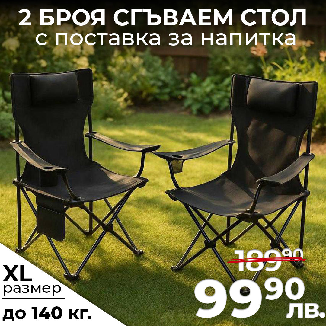 2 броя сгъваем преносим стол WerkBull с възглавница и поставка за телефон до 140кг. за плаж и къмпинг