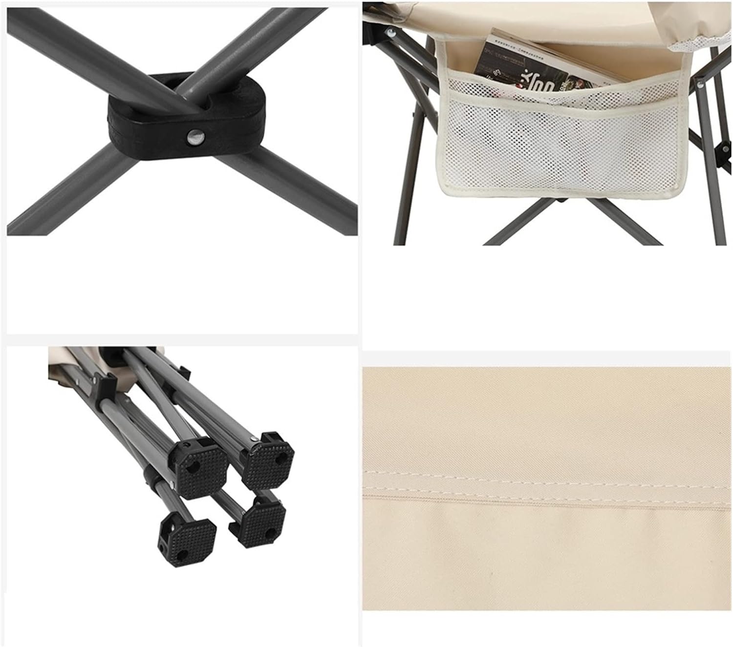 ✅ Модерен дизайн: Столът за къмпинг е многофункционален, тъй като има поставка за чаша, облегалка за глава и джоб за съхранение. Чаши, телефони, портфейли, слънчеви очила, вестници и други лични вещи могат да се съхраняват удобно.