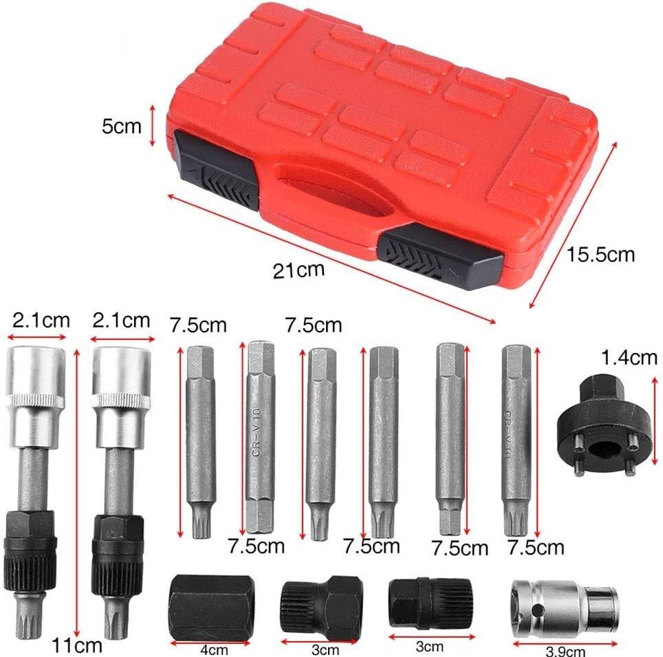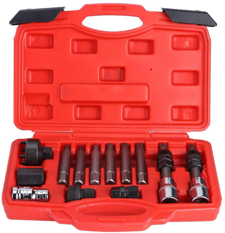 Комплект за демонтаж на алтернатор съдържа 13 броя различни по вид и приложение накрайници. Заключва алтернатора, позволявайки централния болт държащ ролката да бъде развит. Комплекта служи и за монтаж на шайби и за демонтаж. Намира приложение при повечето марки превозни средства като Mercedes, BMW, Renault, Ford, VW, Audi, SEAT, SKODA и много други.
