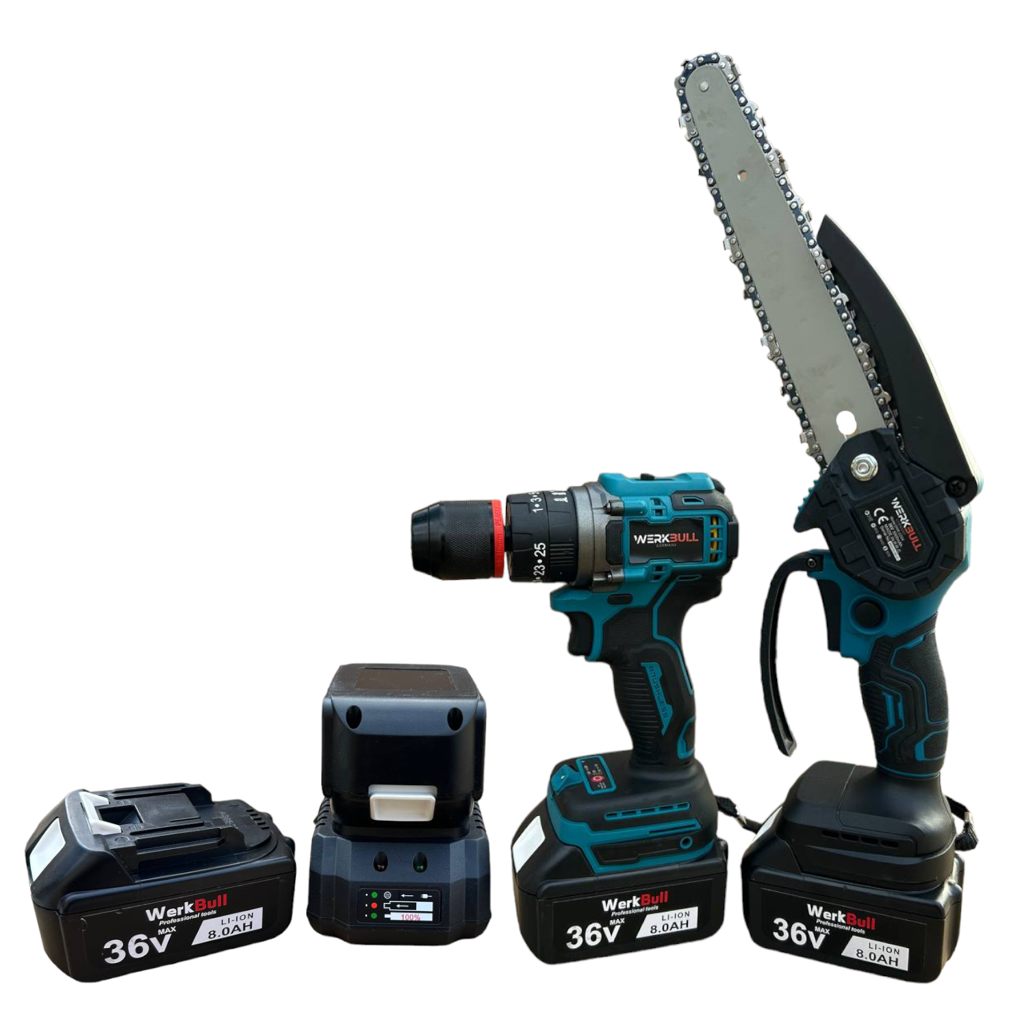 Комплект Ударен Винтоверт и Мини Трион WerkBull с 22см шина + две батерии 36v 8ah