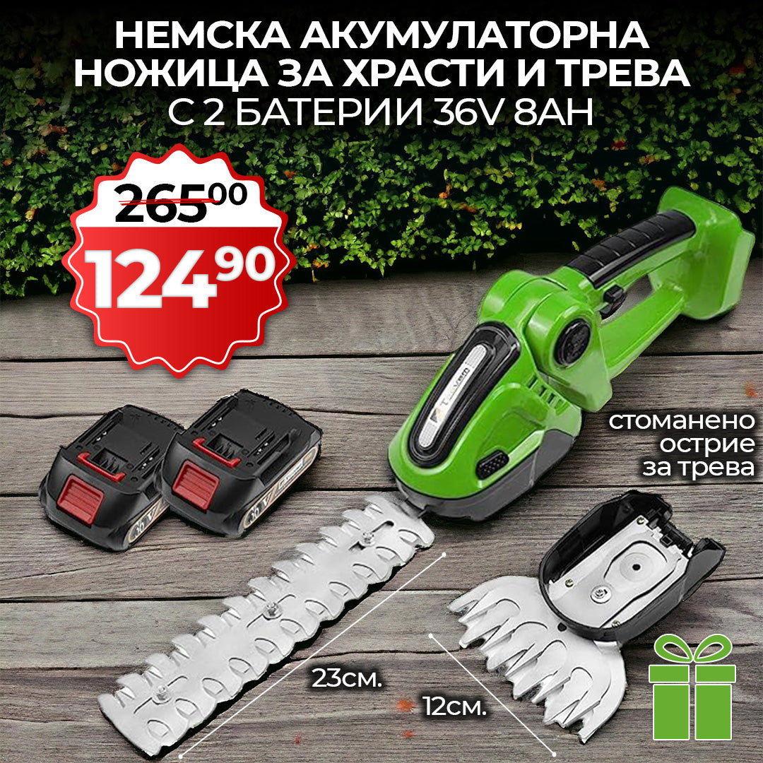 Немски Акумулаторен 2в1 Ножица WerkBull за храсти и трева + две батерии 36v 8Ah
