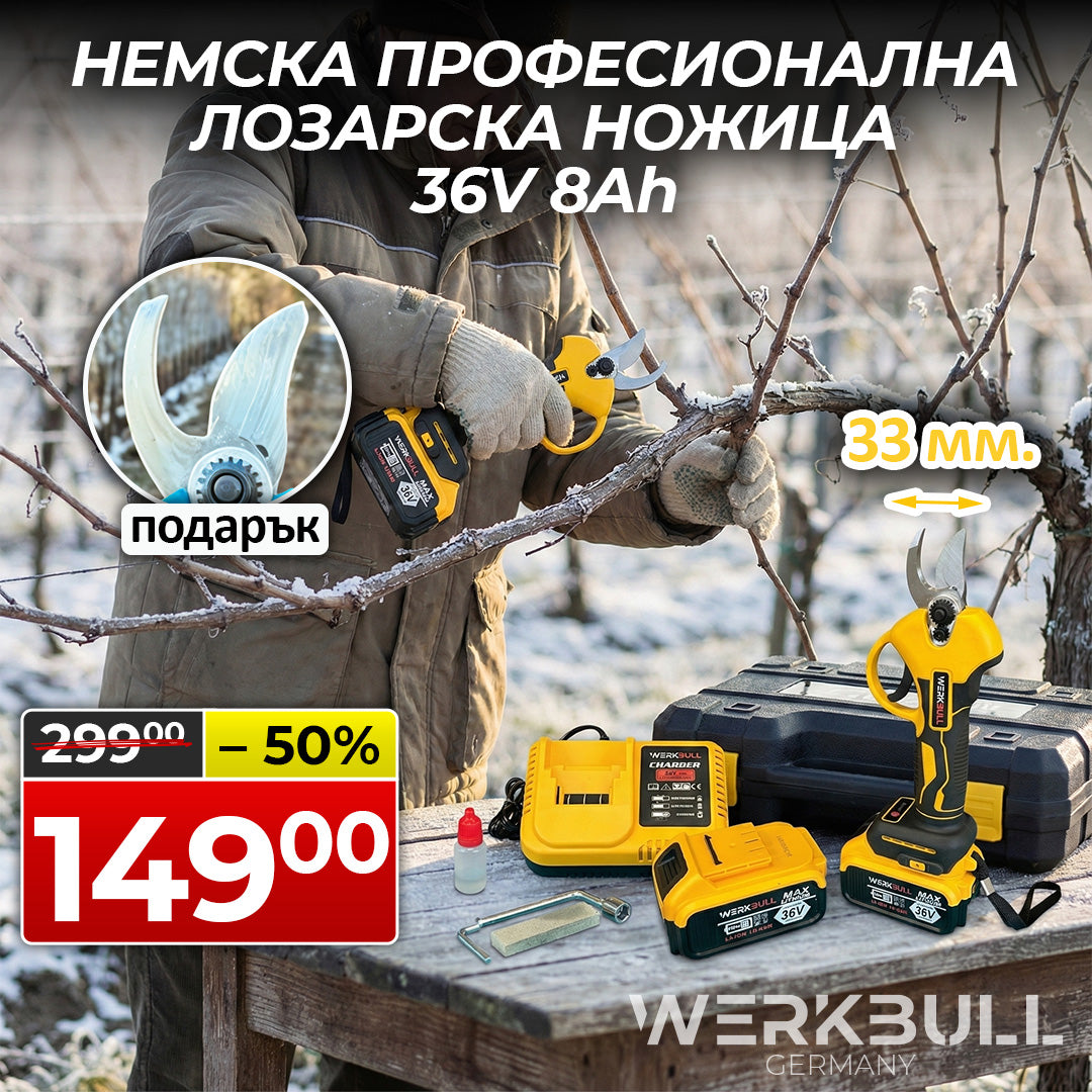 Акумулаторна Безчеткова Ножица WerkBull Germany® /36V 8Ah/ + две батерии и масло
