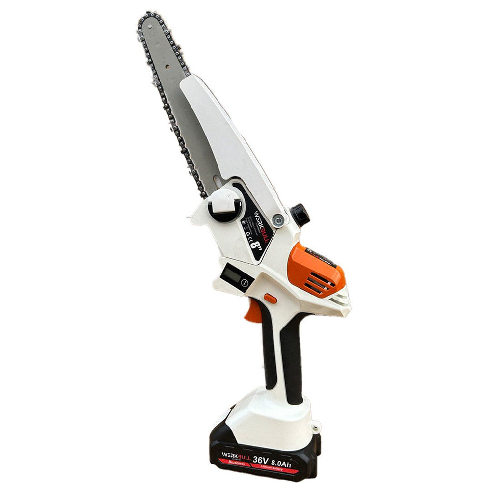 Немски Акумулаторен Трион WerkBull 38V 10Ah + 2 Вериги – Резачка за клони с омасляване на веригата