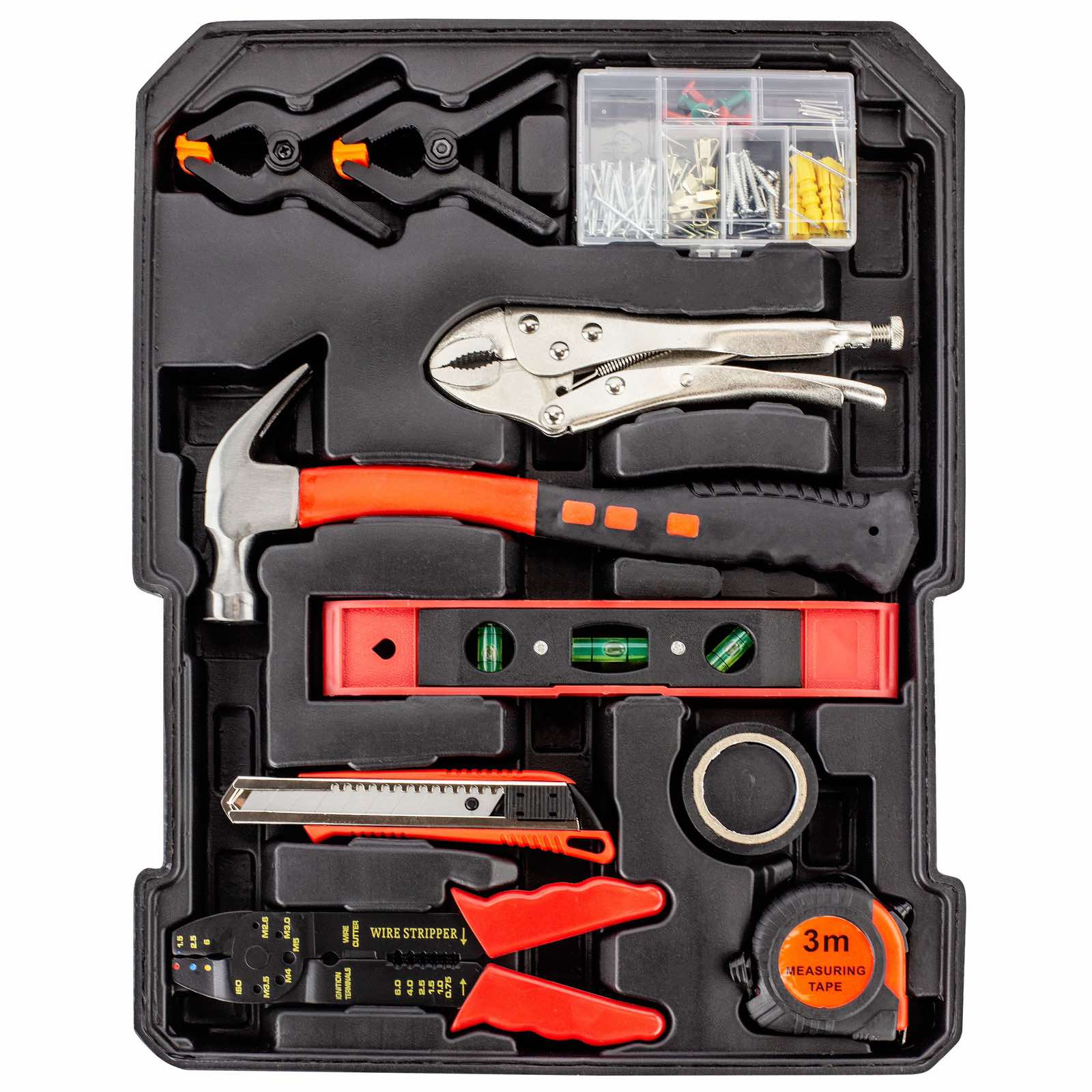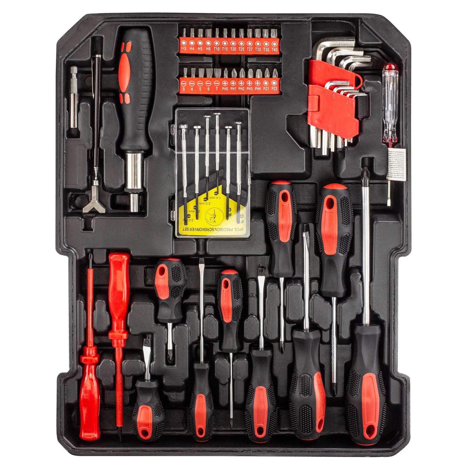 Сред инструментите ще откриете отвертки, френски ключове, клещи, макетни ножове, шестограни и много други, разпределени на четири нива, както следва: