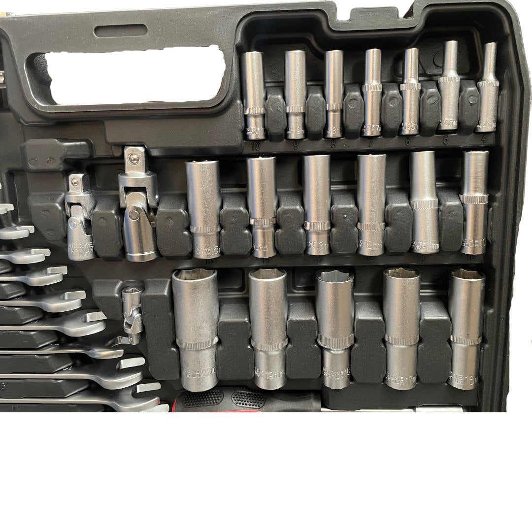 Качествен немски комплект от инструменти с усилени тресчотки,включващ всичко необходимо. Изработени от качествена хром-ванадиева стомана. Удобен за съхранение куфар, в който всичко ще седи на мястото си.
