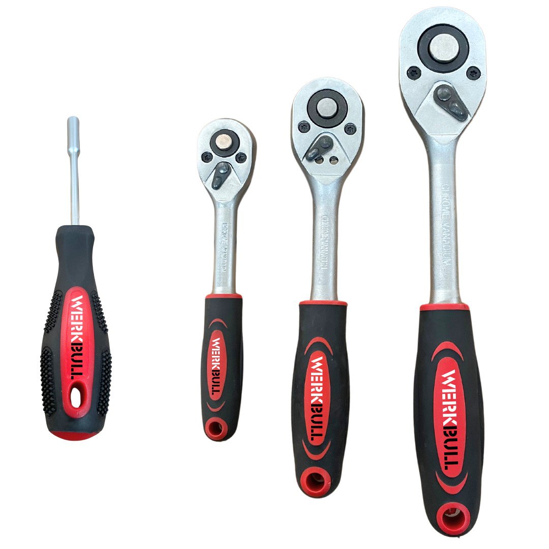 Немски Куфар с Инструменти 216ч WerkBull Гедоре с 3бр Тресчотка и ключове 8-22- Тресчотни